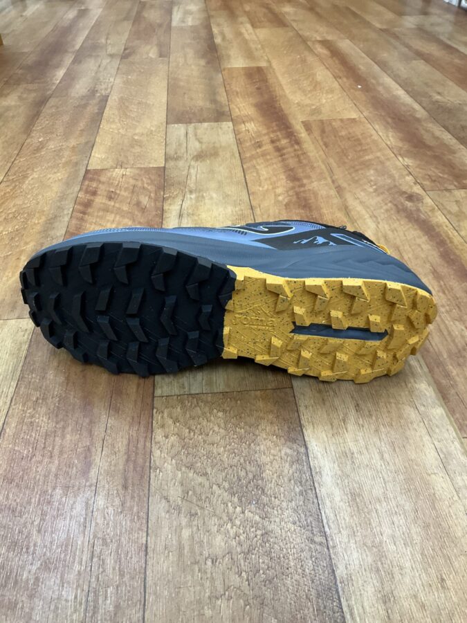 このシューズは、あらゆる地形で安定性を保証する滑りにくいソールを採用