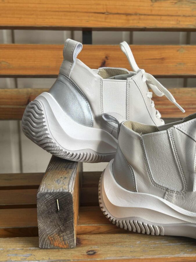 サイドゴアのようなすっきりしたデザインで、カジュアルにもきれいめにも